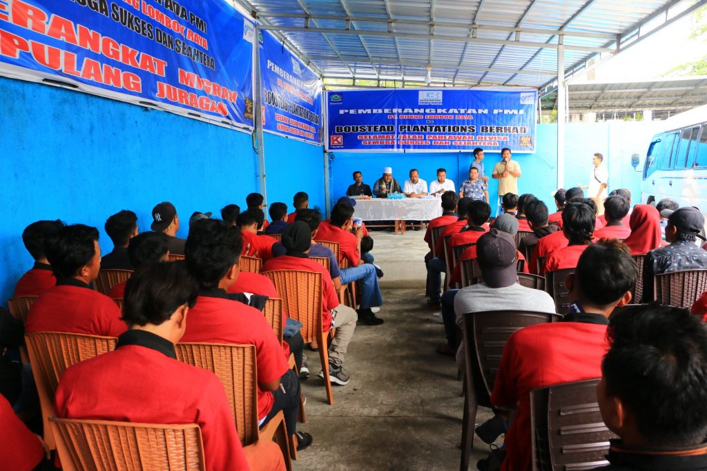 Mataram – PT. Kijang Lombok Raya tuntaskan kuota pemberangkatan calon Pekerja Migran Indonesia (PMI) tahun 2022, dengan melepas pemberangkatan 68 orang CPMI di Mataram pada Rabu (18/01). Pelepasan dilakukan oleh para Executive Unit Tenaga Kerja PT. Boustead Plantations Berhad, Abdul Majid dan Tuan Firdaus, yang sekaligus melihat langsung para calon pekerja yang akan ditempatkan di sejumlah ladang sawit yang dikelolanya.