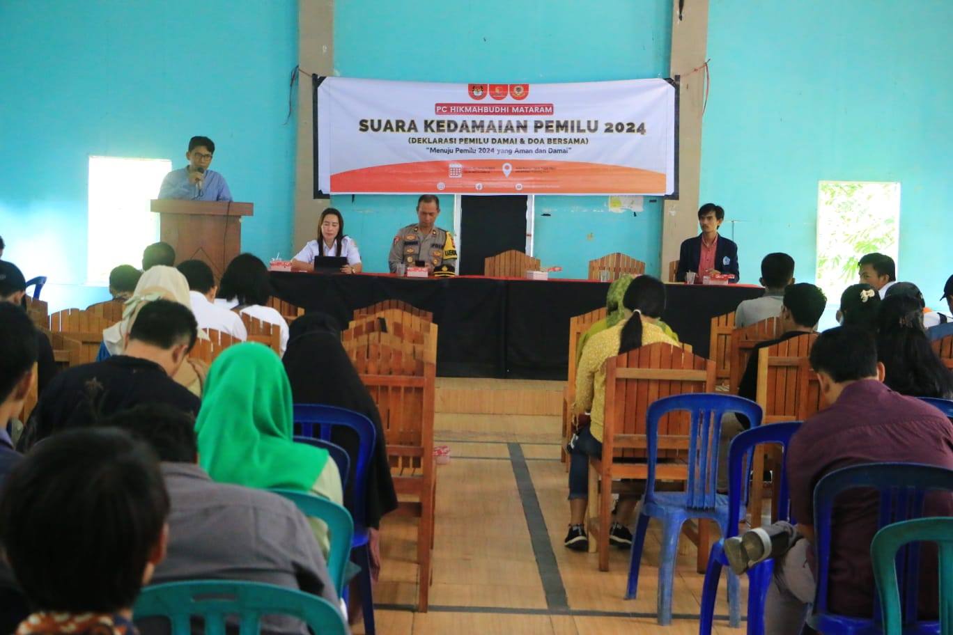 Lombok Utara – Kaum muda yang tergabung dalam Himpunan Mahasiswa Budhis Lombok mendeklarasikan pemilu damai bertajuk “Suara Kedamaian Pemilu 2024” dari pelosok Desa Tegal Maja Kecamatan Tanjung Lombok Utara pada Rabu (31/01). Hal ini dilakukan sebagai upaya meredam gejolak sosial yang terjadi ditengah masyarakat sebagai akibat berbeda arah dukungan politik dan berpotensi menyulut gangguan kamtibmas.