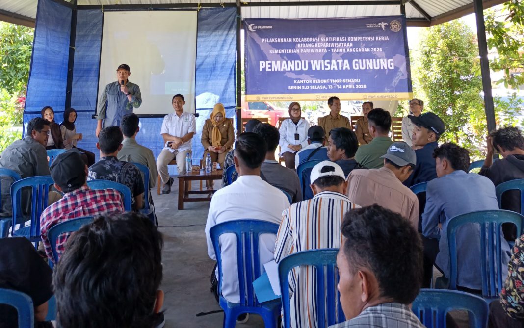 Lombok Utara – Dalam upaya meningkatkan profesionalisme serta kualitas pelayanan pariwisata minat khusus, Kementerian Pariwisata Republik Indonesia melalui Deputi Bidang Sumber Daya Manusia dan Kelembagaan memfasilitasi kegiatan Uji Kompetensi dan Sertifikasi Pemandu Wisata Gunung yang dilaksanakan melalui kolaborasi bersama Dinas Pariwisata dan Ekonomi Kreatif Provinsi Nusa Tenggara Barat serta Balai Taman Nasional Gunung Rinjani (TNGR). Kegiatan ini berlangsung pada 13–14 April 2026 di Desa Senaru, Kabupaten Lombok Utara, dan dibuka secara resmi oleh Kepala Dinas Pariwisata dan Ekonomi Kreatif Provinsi NTB, Ahmad Nur Aulia.