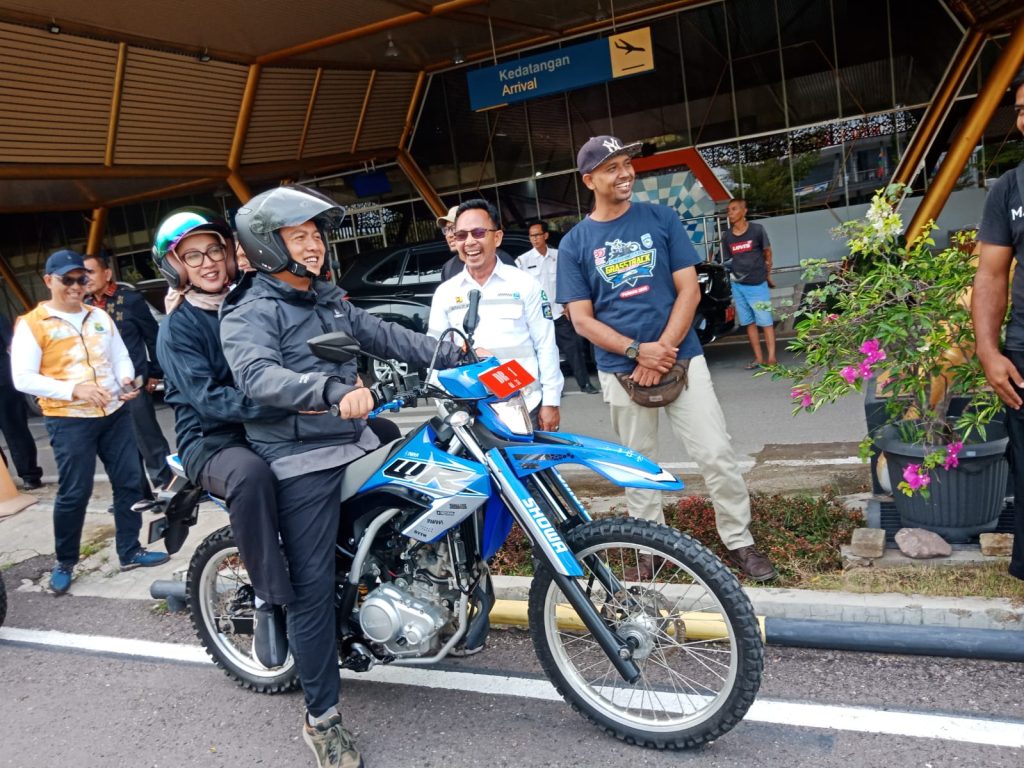 Gubernur NTB diterima Bupati Sumbawa Ir. H. Syarafuddin Jarot, M.P., beserta pimpinan OPD terkait yang pada kunker kali ini terasa berbeda karena Gubernur NTB dan Bupati Sumbawa, masing-masing bersama istri menggunakan motor trail menuju lokasi.