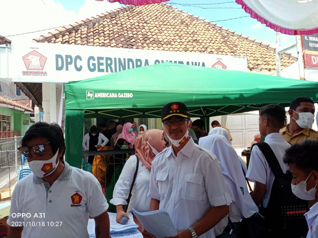 Sumbawa – Dewan Pimpinan Cabang (DPC) Partai Gerindra Kabupaten Sumbawa turun aksi, bergotong royong untuk membantu pemerintah mempercepat capaian vaksinasi daerah. Aksi sosial ini merupakan bentuk kepedulian partai terhadap kesehatan masyarakat setempat, dengan total distribusi mencapai 1.000 dosis vaksin.