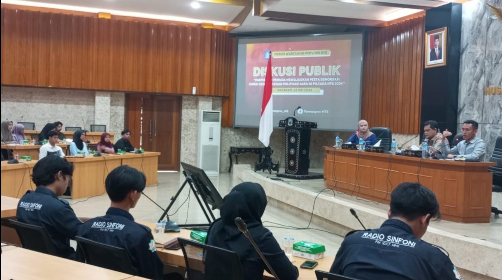 Mataram – Jelang Pemilihan Kepala Daerah (Pilkada) serentak 2024, Forum Wartawan Pemprov Nusa Tenggara Barat menggelar diskusi publik, bertajuk “partisipasi pemuda mewujudkan pesta demokrasi damai dan mencegah politisasi SARA di Pilkada NTB 2024” di Gedung Sangkareang Kantor Gubernur NTB pada Rabu (22/5). Kegiatan ini diikuti oleh lebih dari 50 mahasiswa dari berbagai perguruan tinggi di Kota Mataram.