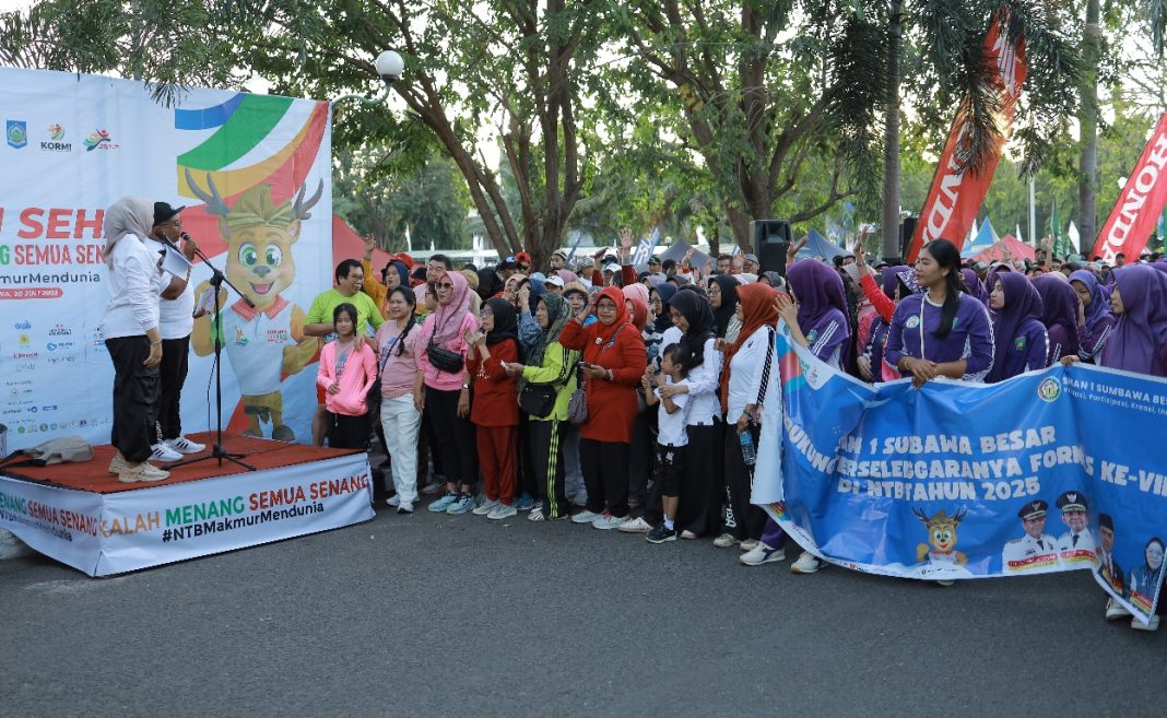 Sumbawa – Puluhan ribu warga Kabupaten Sumbawa Nusa Tenggara Barat tumpah ruah, mewarnai kegiatan akbar Jalan Sehat road to Festival Olahraga Masyarakat (Fornas) ke VIII tahun 2025 di kawasan publik Lapangan Pahlawan, Minggu (20/7). Mengusung tema “Kalah Menang Semua Senang, NTB Makmur Mendunia”, kegiatan ini dihajatkan sebagai bagian dari rangkaian pra-acara ajang olahraga yang dijadwalkan pada 26 Juli sampai dengan 1 Agustus mendatang.