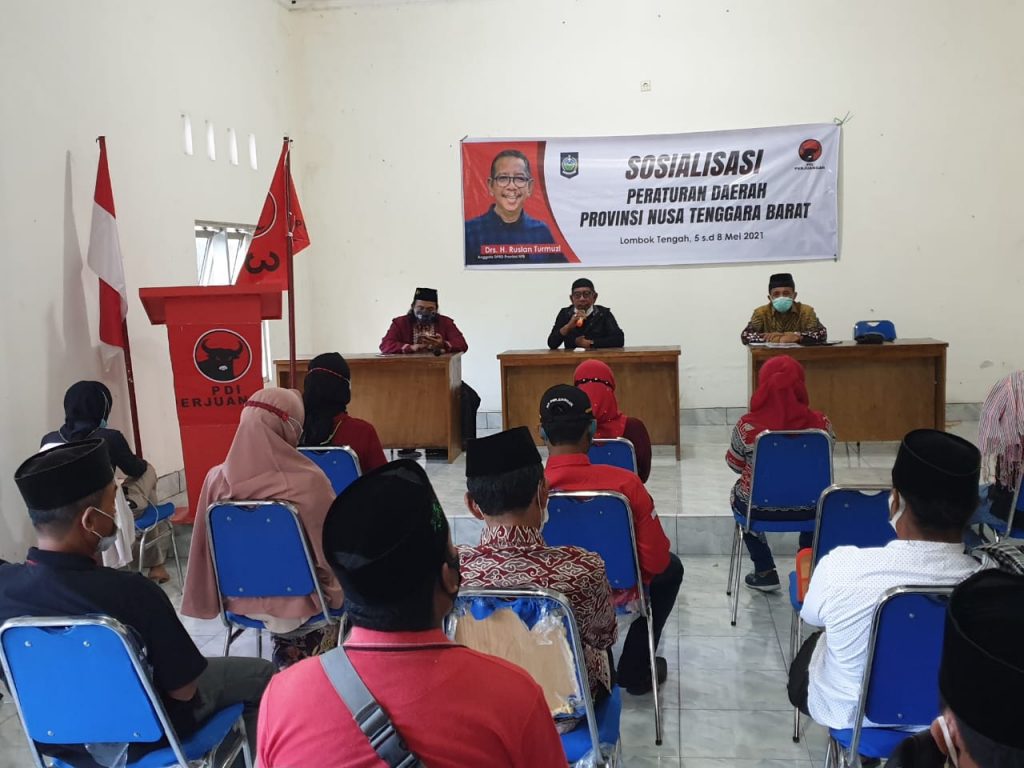 Lombok Tengah – Komisi IV DPRD NTB, Ruslan Turmuzi melakukan sosialisasi terhadap Peraturan Daerah (Perda) NTB Nomor 3/ 2020 tentang Ekonomi Kreatif dan Perda Nomor 7/2020 tentang Penanggulangan Penyakit Menular di Kantor PDI Perjuangan Lombok Tengah, Kota Praya, Loteng, pada Kamis (6/5).