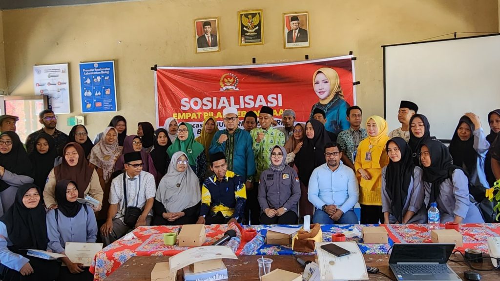 Lombok Tengah – Sosialisasi 4 Pilar Kebangsaan sebagai media penguat kesadaran berbangsa dan bernegara terus dilakukan hingga ke pelosok daerah oleh Evi Apita Maya, anggota Komite I Dewan Perwakilan Daerah (DPD) RI. Upaya ini juga sekaligus dimanfaatkan untuk mengedukasi pendidikan demokrasi, khususnya bagi pemilih pemula yang masih duduk dibangku sekolah. Seperti yang dilakukan di Sekolah Menengah Atas (SMA) Negeri 1 Kecamatan Pujut Lombok Tengah Nusa Tenggara Barat pada Jumat (27/9).