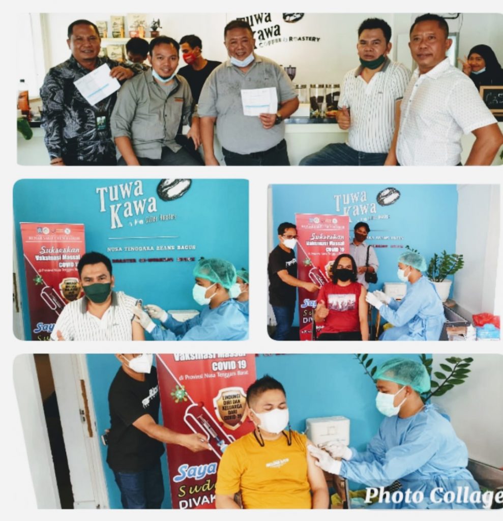 Mataram – Gelaran Vaksinasi yang digelar oleh RSUP NTB , Tuwa Kawa dan Mi6 yang berlangsung hari ini, Rabu 18 Agustus 2021 bertempat di Coffee Shop Tuwa Kawa berlangsung lancar dan Tertib. Sejak pagi jam 09.00 wita masyarakat berdatangan mengikuti vaksinasi dengan standar prokes.